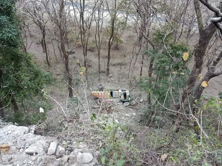 आज सुबह चौकी दुगड्डा को सूचना मिली कि एक ट्रक कोटद्वार से दुगड्डा की तरफ आने वाले मार्ग पर पांचवें मिल के पास अनियंत्रित होकर सड़क से नीचे गहरी खाई में गिर गया है जिसमें कुछ व्यक्ति बैठे हैं उक्त सूचना पर तत्काल बिना देरी किए हुए घटनास्थल पर दुगड्डा चौकी से पुलिस फोर्स मौके पर पहुंचा तो पाया कि पांचवें मिल दूगड्डा मार्ग के नीचे एक ट्रक सड़क से नीचे गहरी खाई में गिरा हुआ था पुलिस द्वारा रस्सों की मदद से नीचे गहरी खाई में पहुंचे तो पाया कि ट्रक संख्या UK12CA-0426 जिसमें सीमेंट के कट्टे लगे हुए थे के अंदर कुल पांच व्यक्ति घायल अवस्था मैं फंसे हुए थे, जिन्हें काफी मेहनत एवम प्रयास के बाद ट्रक से बाहर निकाला गया एवं मौके पर एसडीआरएफ को भी बुलाया गया घायल व्यक्तियों को पुलिस चौकी दुगड्डा और एसडीआरएफ की मदद से स्ट्रेचर एवं रसों की मदद से खाई से ऊपर सड़क में लाया गया जिन्हें 108 के माध्यम से बेस हॉस्पिटल कोटद्वार उपचार हेतु भेजा गया। पुलिस द्वारा तुरंत मौके पर पहुंचकर घायलों को समय रहते से गहरी खाई से निकालकर अस्पताल पहुंचाया गया जिससे किसी प्रकार की जनहानि नहीं हो सकी एवं घायलों को समय रहते अस्पताल पहुंचाया गया।
