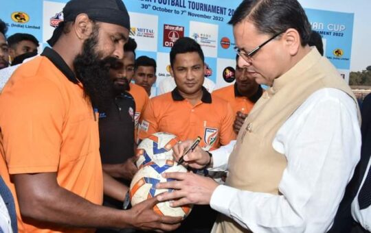 मुख्यमंत्री श्री पुष्कर सिंह धामी ने पवेलियन ग्राउण्ड में दि हिमालयन कप ऑल इण्डिया फुटबॉल टूर्नामेंट के समापन समारोह में...