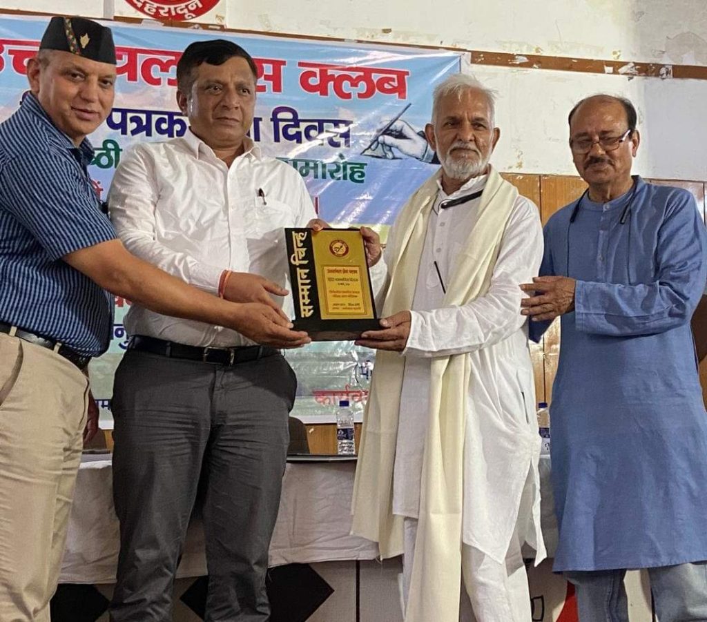 हिंदी पत्रकारिता दिवस के उपलक्ष्य में आज उत्तरांचल प्रेस क्लब की ओर से संगोष्ठी एवं सम्मान समारोह का आयोजन किया गया। इस अवसर पर सूचना महानिदेशक श्री बंशीधर तिवारी बतौर मुख्य अतिथि उपस्थित रहे।