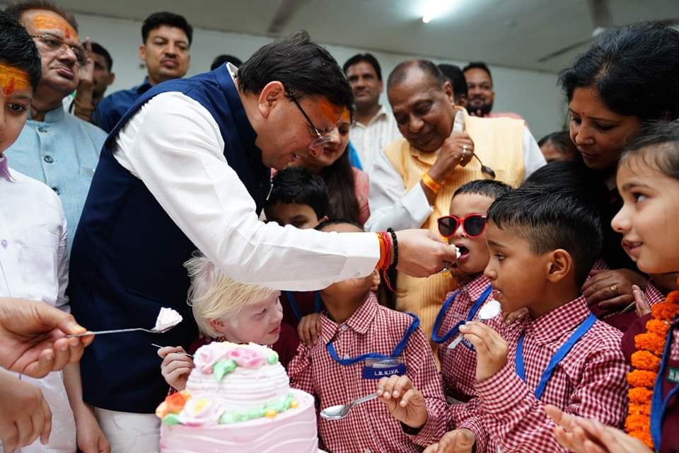 मुख्यमंत्री श्री पुष्कर सिंह धामी आज अपने जन्म दिवस के अवसर पर राजपुर रोड स्थित राष्ट्रीय दृष्टि दिव्यांगजन सशक्तिकरण संस्थान पहुंचे और दृष्टिबाधितार्थ बच्चों संग केक काटकर जन्मदिन मनाया। उन्होंने बच्चों को केक खिलाया एवं उनके उज्ज्वल भविष्य की कामना की। इस अवसर पर दृष्टिबाधितार्थ उच्चतर माध्यमिक आदर्श विद्यालय के बच्चों ने उपहार स्वरूप अपने द्वारा बनाया गया मॉडल मुख्यमंत्री को भेंट किया।