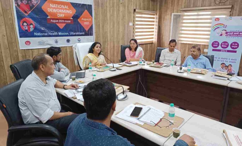बैठक में अगस्त 2023 में आयोजित होने वाले राष्ट्रीय कृमि मुक्ति दिवस कार्यक्रम को सफल बनाने की रणनीति तय की गई। जिसमें कृमि मुक्ति दिवस कार्यक्रम उत्तराखण्ड के सभी 13 जिलों में 1 से 19 साल तक के 38.36 लाख बच्चों और किशोरों को 22 अगस्त 2023 एवं किसी कारणवश कृमिनाशक दवा खाने से वंचित रह गये बच्चों को मॉप-अप दिवस 29 अगस्त 2023 को एल्बेंडाजोल दवा प्रशिक्षित शिक्षकों एवं आंगनबाडी कार्यकर्ताओं द्वारा स्कूलो एवं आंगनवाड़ी केन्द्रों मे खिलायी जायेगी।