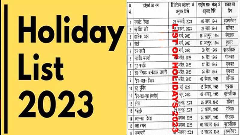 वर्ष 2023 में सार्वजनिक अवकाशों की सूची