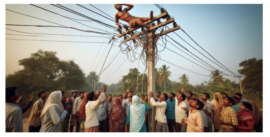 मांडू बाबू पहले से ही नशे में था और होश में नहीं था। गुस्से में आकर वह घर के पास लगे एक बिजली के खंभे पर चढ़ गया और खंभे पर लगे तारों पर जाकर लेट गया। इस दौरान वह वहीं सो गया। यह दृश्य देखकर आसपास के लोग दहशत में आ गए।
