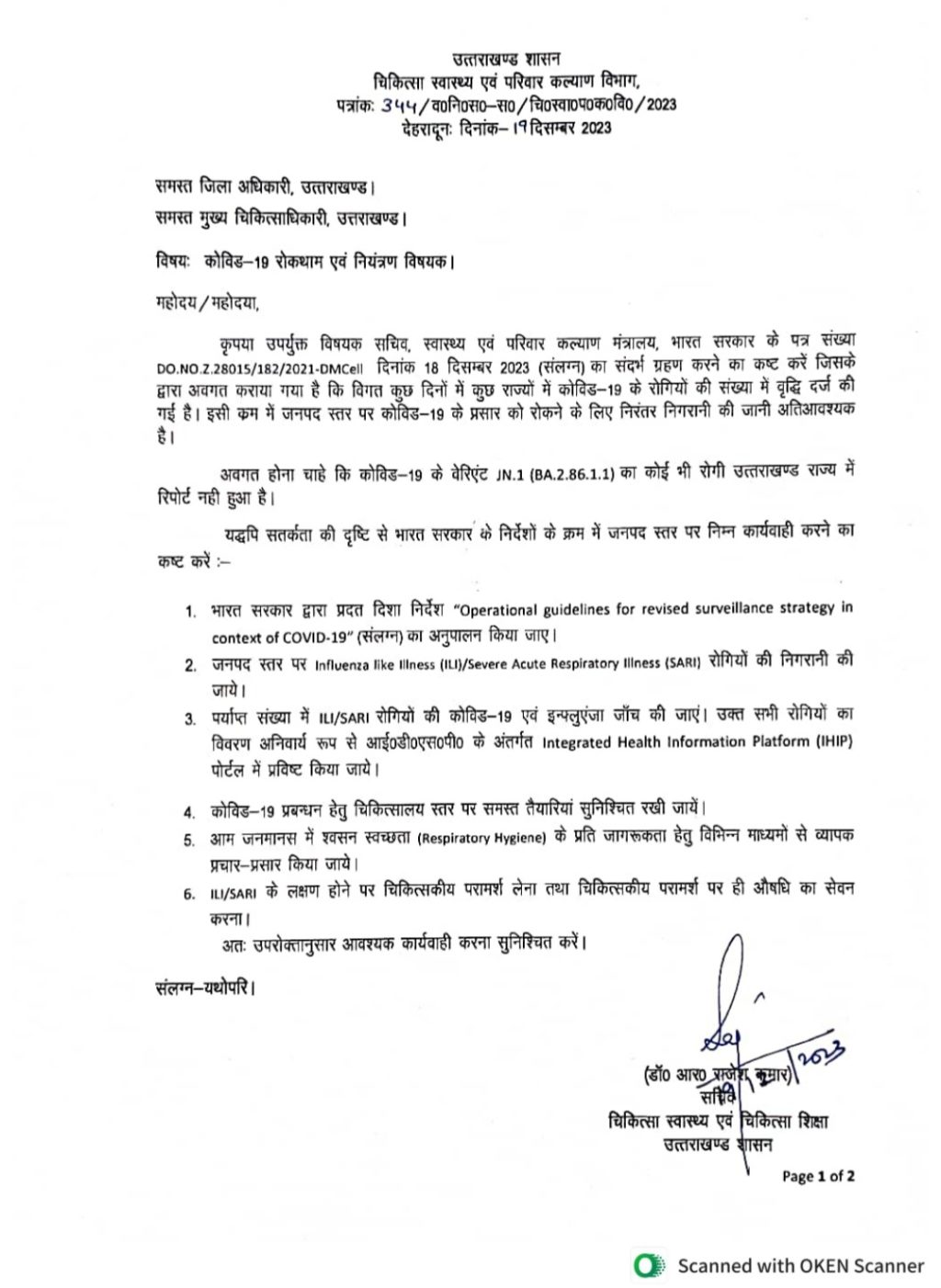 उत्तराखंड में सामने आये कोरोना पॉजिटिव 02 मरीज