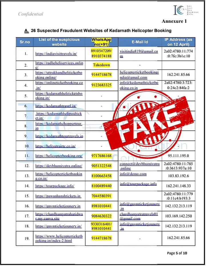 वर्तमान में ठगों के द्वारा हेलीसेवा के नाम पर सम्पूर्ण भारत के विभिन्न राज्यों में लाखों रुपये की धोखाधडी की जा रही है। इस प्रकार की ठगी का मुख्य कारण यह था कि लोगों को चार धाम यात्री की हैली सेवा बुकिंग की आधिकारिक वैब साईट की जानकारी नहीं थी | इस वर्ष चार धाम यात्रा हेतु हेलीकाप्टर सेवा की आधिकारिक बुकिंग IRCTC द्वारा अपनी वैबसाईट को चारधाम हेलीसेवा की बुकिंग के लिए अधिकृत किया गया है। इस वेबसाईट का URL www.heliyatra.irctc.co.in के माध्यम से अपनी यात्रा हेतु हेली सेवा बुक करा सकते है, कोई भी भुगतान करने से पहले सम्बन्धित भुगतान के माध्यम की जाँच पडताल स्वंय करें। ठग अपना फर्जी आई कार्ड,व्हाट्सएप्प डीपी लगातार यात्रियों को ठगने का प्रयास करते हैं। जिनमें पुलिस द्वारा अभी तक 25 से अधिक फर्जी वेबसाइट व नंबरों को बंद करवाया जा चुका है।