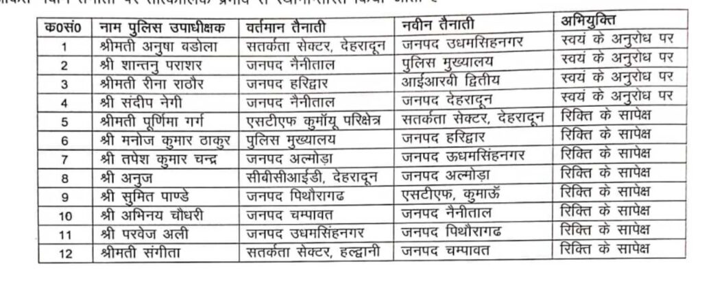 उत्तराखंड में कई DSP के ट्रांसफर के आदेश, देखें किसे मिली कहां तैनाती…