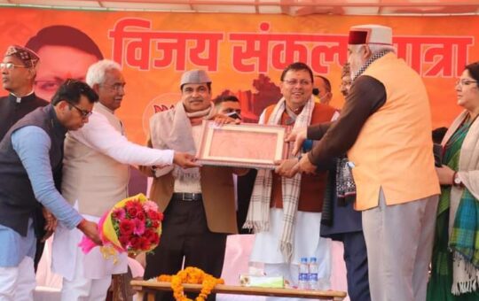 केंद्रीय सड़क परिवहन, राजमार्ग मंत्री श्री नितिन गडकरी एवं मुख्यमंत्री श्री पुष्कर सिंह धामी ने खटीमा में आयोजित "विजय संकल्प...