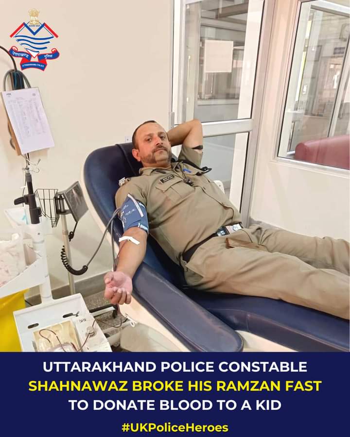 पहले नेकी फिर इबादत’, हर धर्म इंसान को यही शिक्षा देता है। उत्तराखण्ड पुलिस के जवान ने इसकी मिसाल पेश की है। उन्होंने रमजान के इस पाक महीने में रोजा तोड़कर एक बच्चे का जीवन रक्तदान करके बचाया।