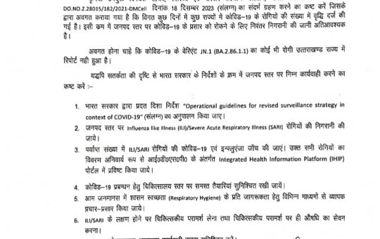 उत्तराखंड : राजधानी देहरादून के दून अस्पताल में एक ढाई साल की बच्ची इन्फ्लुएंजा-ए के साथ ही एच-1 एन-1 पॉजिटिव...