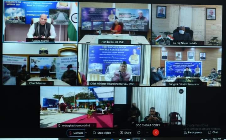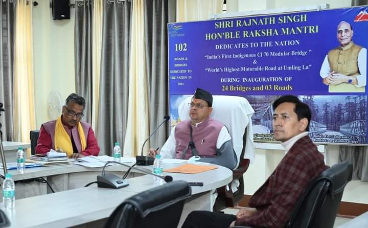 केंद्रीय रक्षा मंत्री श्री राजनाथ सिंह ने उत्तराखण्ड के 3 पुलों का वर्चुअल लोकार्पण किया। कार्यक्रम में मुख्यमंत्री श्री पुष्कर सिंह धामी ने भी वर्चुअल माध्यम से प्रतिभाग किया। कार्यक्रम में रक्षा मंत्री श्री राजनाथ सिंह द्वारा कुल 24 पुल और 3 सड़कों का लोकार्पण किया गया। रक्षा मंत्री द्वारा उत्तराखण्ड के तवाघाट- घतिया बगड़ को जोड़ने वाला घस्कू पुल, जौलजीबी मुनस्यारी को जोड़ने वाले गौरी गाढ पुल, सेमली ग्वालदम को जोड़ने वाला बदामगढ़ पुल का लोकार्पण किया गया। रक्षा मंत्री ने बधाई देते हुए कहा कि शून्य से नीचे के तापमान और अत्यधिक ऊंचाई की अनेक चुनौतियों के बावजूद बीआरओ कार्मिकों द्वारा निर्मित सड़कों, टनल और पुलों ने आज स्थानों के बीच की दूरी और समय बहुत कम कर दिया है। केंद्र ने सीमावर्ती क्षेत्रों के विकास की जरूरतों का ध्यान रखा है।मुख्यमंत्री श्री धामी ने कहा कि बीआरओ द्वारा निर्मित सड़कें और पुल, प्रधानमंत्री श्री नरेंद्र मोदी जी के आत्मनिर्भर भारत के विजन को पूरा करते हैं। उत्तराखण्ड और यहाँ के सीमावर्ती क्षेत्रों में रहने वाले नागरिकों को इसका लाभ मिलेगा।