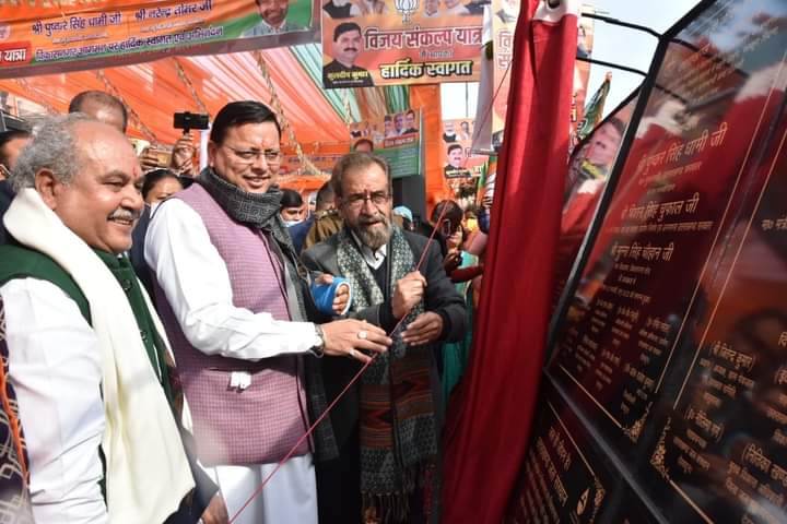 मुख्यमंत्री श्री पुष्कर सिंह धामी ने विकासनगर विधानसभा क्षेत्र में ₹260 करोड़ की योजनाओं का लोकर्पण एवं शिलान्यास किया। उन्होंने विकासनगर में बस अड्डा एवं पार्किंग निर्माण की भी घोषणा की। इस अवसर पर केंद्रीय कृषि मंत्री श्री नरेंद्र सिंह तोमर और विधायक श्री मुन्ना सिंह चौहान भी मौजूद रहे। मुख्यमंत्री श्री धामी ने कहा कि प्रधानमंत्री श्री नरेंद्र मोदी के मार्गदर्शन में उत्तराखण्ड की विकास यात्रा लगातार आगे बढ़ रही है। पिछ्ले 5 सालों में केन्द्र सरकार के सहयोग से ₹1 लाख करोड़ से अधिक की योजनाएं राज्य में चल रही हैं। उन्होंने कहा कि प्रदेश में समाज के हर वर्ग को ध्यान में रखते हुए योजनाएं चलाई जा रही है। कोरोना काल में हर वर्ग को राहत देने का कार्य किया गया। 2025 तक प्रदेश को देश का अग्रणी राज्य बनाने के लिए हर संभव प्रयास किये जा रहे हैं। केंद्रीय कृषि मंत्री श्री नरेन्द्र सिंह तोमर ने कहा कि देवभूमि उत्तराखण्ड में अनेक प्राकृतिक सम्पदायें है। उत्तराखण्ड अध्यात्मिक एवं आस्था के साथ ही, वीरता एवं बहादुरी का केन्द्र भी है। डबल इंजन की सरकार में उत्तराखण्ड में विकास के कार्य तेजी से हुए हैं।